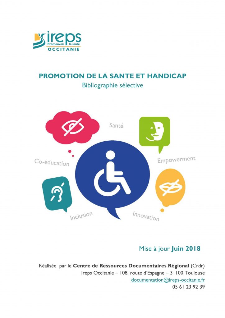 CAMBON Marjorie, Promotion santé et handicap Bibliographie sélective, IREPS Occitanie, 2018/06, 21p.
