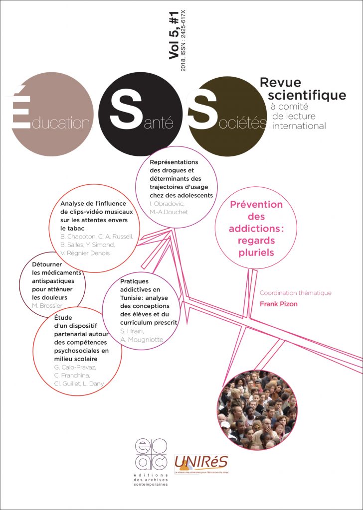 La Revue Éducation, Santé, Sociétés (ESASOS) publie depuis 2014 des articles scientifiques sur les liens entre éducation, santé et sociétés. Elle est éditée par les Editions des archives contemporaines et le réseau UNIRéS avec l’appui de la MGEN. Publiée en Open Access et en papier, la revue ESASOS est qualifiante et indexée par le HCERES et le CNU, 70ème section en Sciences de l’éducation et de la formation.