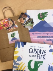 Cette mallette pédagogique a été conçue dans le cadre du projet « Quenottes et compagnie », initié en 2022 par le service de protection maternelle et infantile (PMI) du Conseil départemental de la Côte-d’Or. Elle s’adresse aux enseignant.es afin de préparer les élèves à l’intervention de la PMI dans leur classe de moyenne section, autour de la question de la santé bucco-dentaire. Elle est construite autour de l’album « Gustave est tout fier » (Marion Defaut et Annelyse Bournand), imaginé expressément pour le projet. Le livret pédagogique apporte les éléments théoriques indispensables et présente les ateliers qui seront proposés en classe (pendant et après l’action). Le matériel nécessaire pour les ateliers est disponible en annexes.
